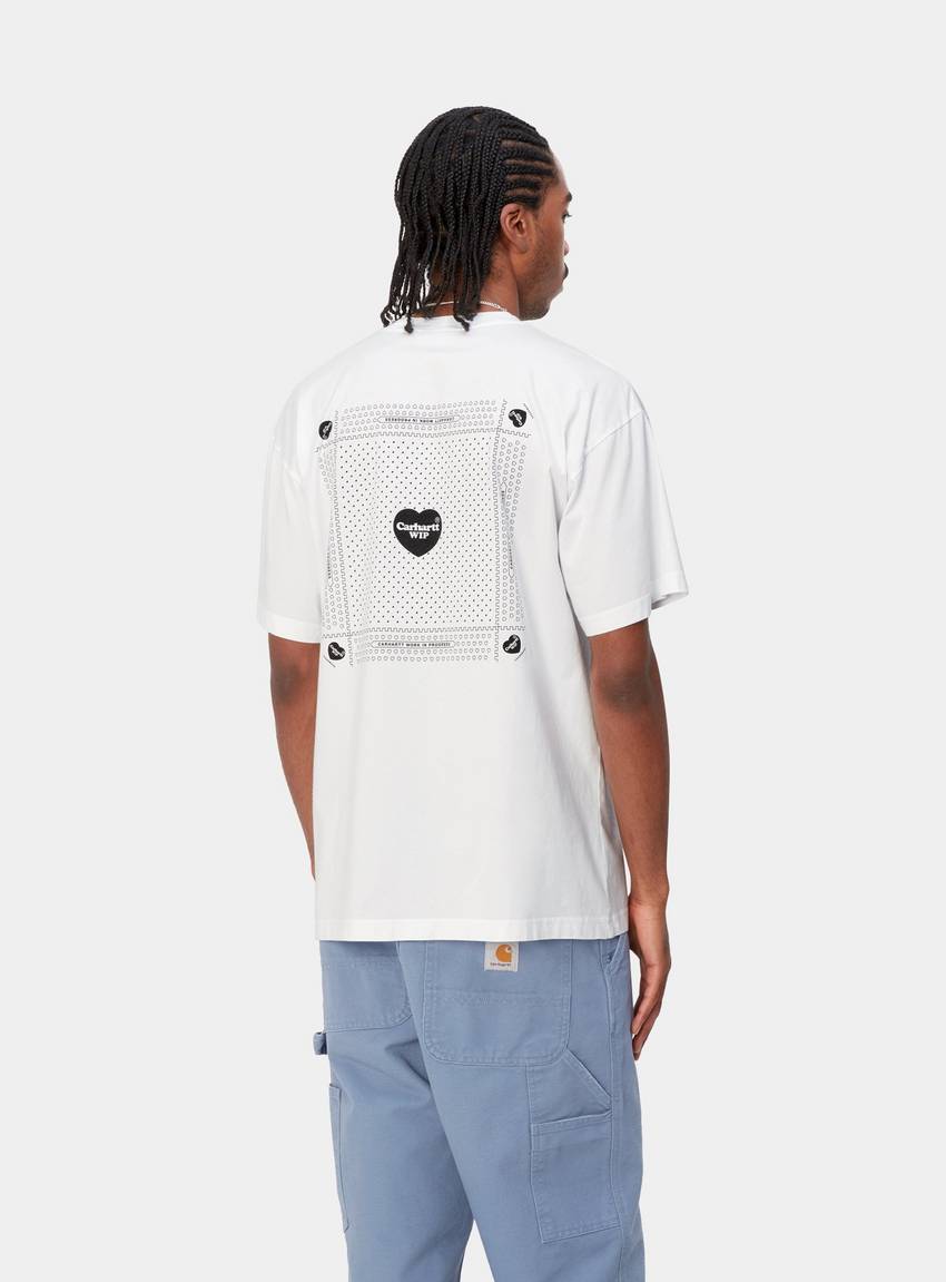 La S/S Heart Bandana T-Shirt se ha tejido en punto de algodón orgánico ligero y presenta un corte holgado. Los estampados gráficos adornan el pecho y la espalda.